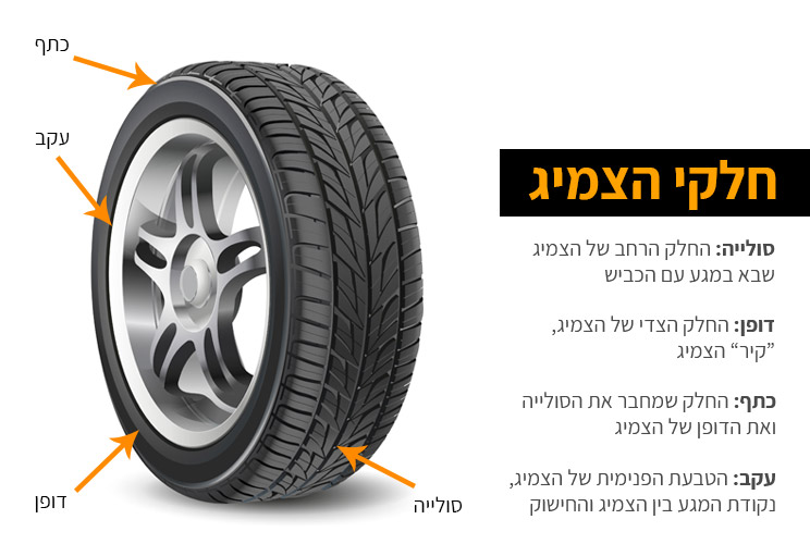 4. עקב - הטבעת הפנימית של הצמיג, החלק בו הצמיג בא במגע עם החישוק.