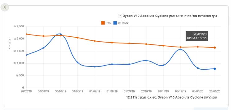 איך תדעו אם המחיר של המוצר שמעניין אתכם נחשב לנמוך או גבוה? פשוט, חפשו את כפתור "מגמות מחיר ופופולאריות" שמופיע בגרסת האתר למחשב הנייח, או גללו מתחת למפרט הטכני של המוצר בגרסת האתר לטלפון הסלולרי. בגרף שיופיע בפניכם תוכלו לראות את היסטוריית המחירים של המוצר לאורך ציר זמן, וכך לדעת האם המחיר של המוצר כרגע זול או יקר, והאם כדאי לרכוש כעת או להמתין שהמחיר יירד שוב (או לבחור במוצר אחר).
